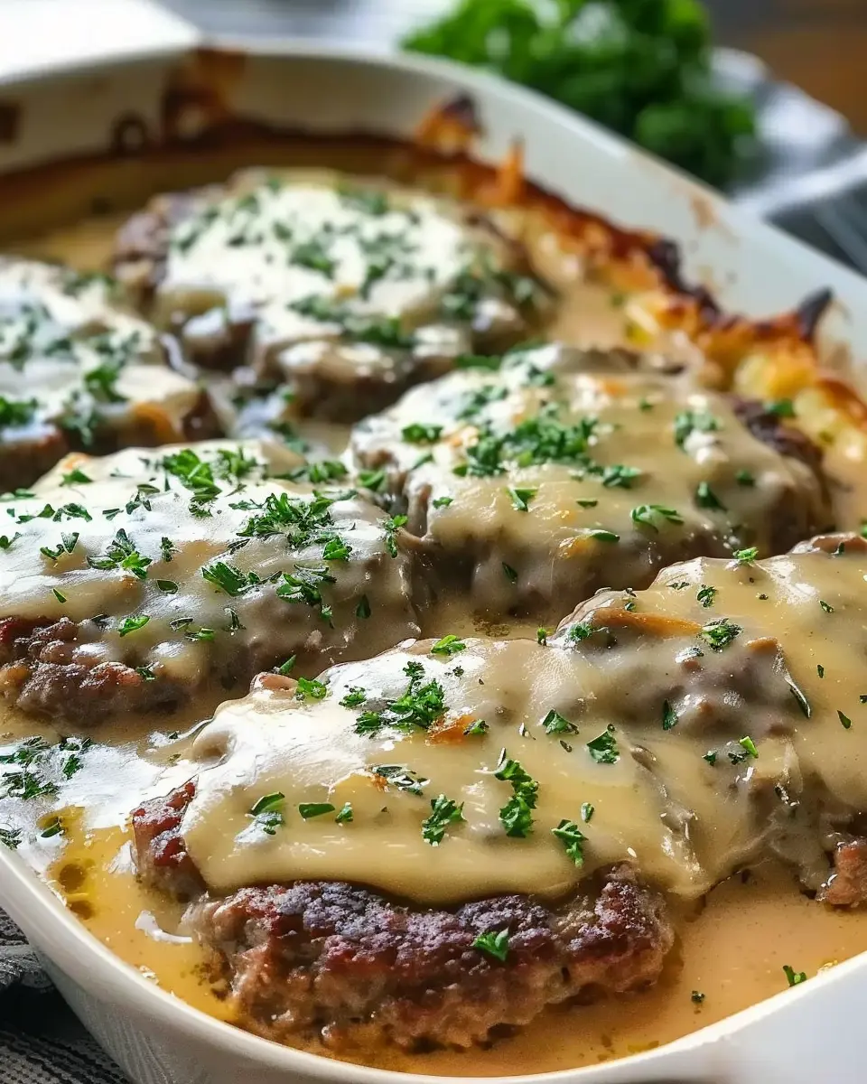 To make your Amish Hamburger Steak Bake pop, consider these simple yet effective garnishes: