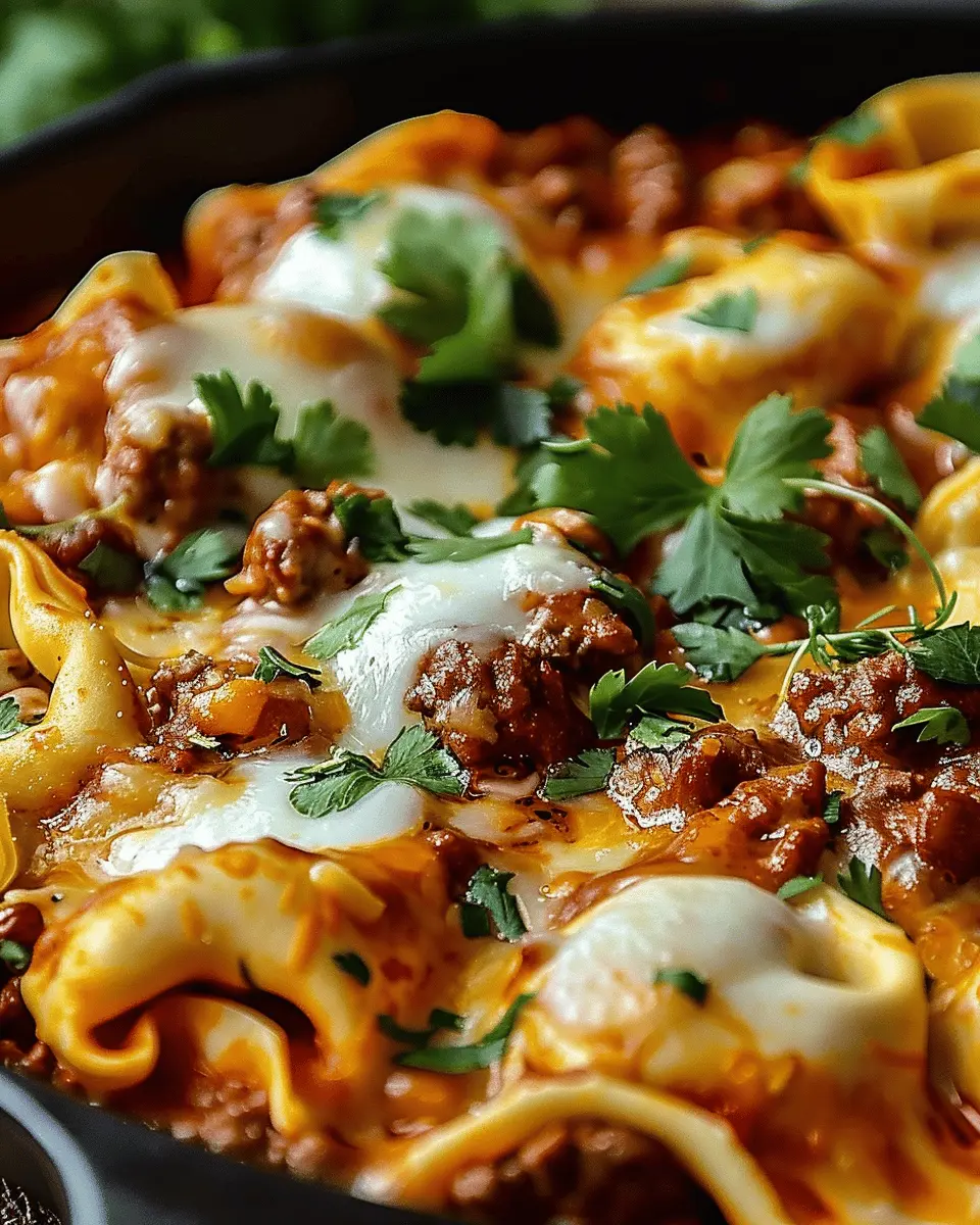 A delicious twist on traditional enchiladas, combining tortellini with savory beef and melted cheese.