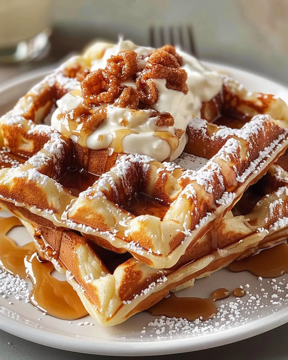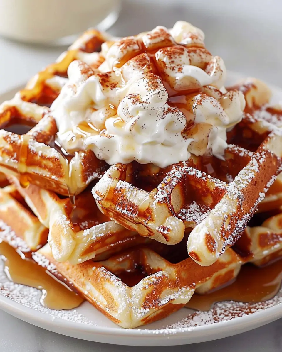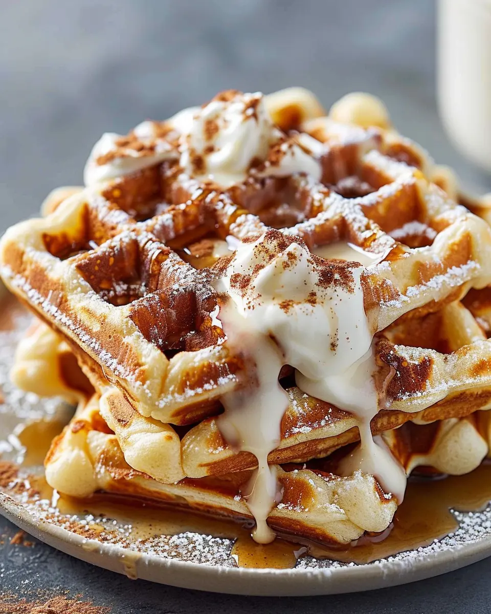 Cinnamon roll waffles are a delightful twist on a classic breakfast favorite. Each bite of these decadent treats combines the gooey, cinnamon-sugar goodness of a cinnamon roll with a crispy, waffle texture. Imagine drizzling a velvety cream cheese frosting over them—pure bliss!