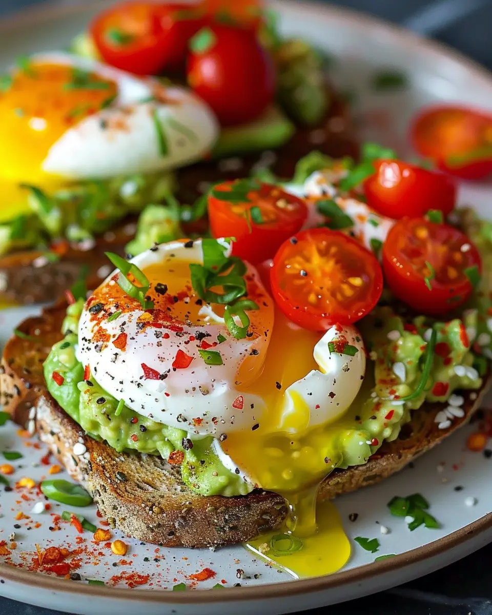 PrintCreamy Avocado Toast: A Delightful Twist with Poached Eggs and Cherry Tomatoes