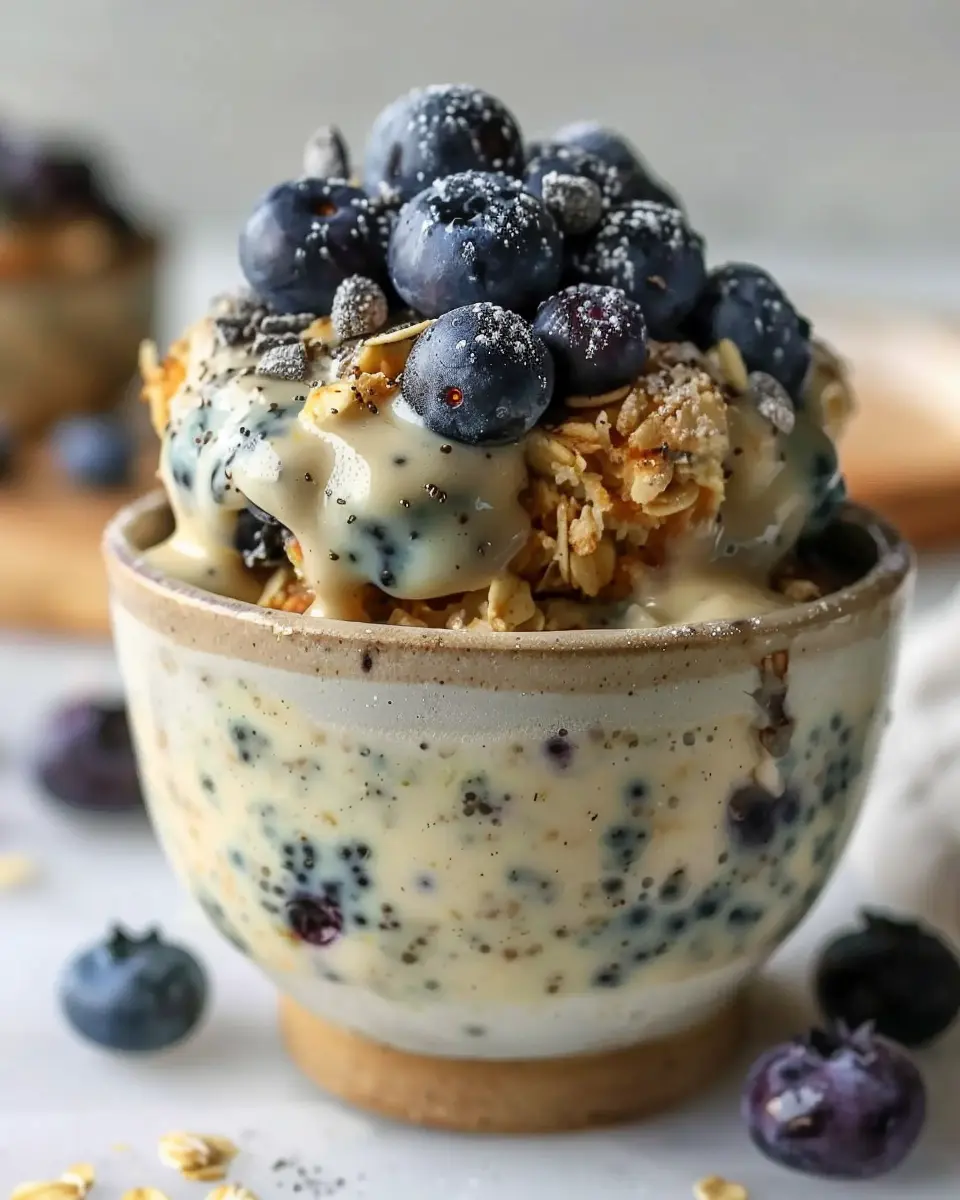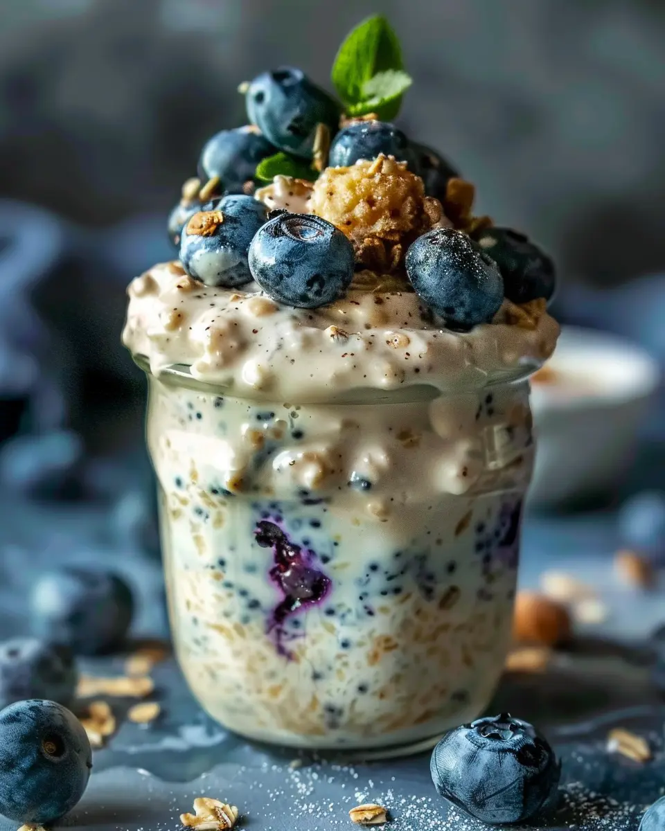 A delightful and nutritious breakfast that combines the flavors of blueberry muffins with the convenience of overnight oats.