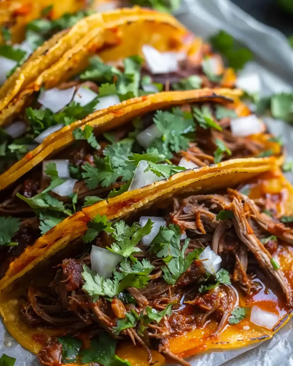 Discover the ultimate comfort food with these hearty and delicious Crock Pot Birria Tacos, perfect for a cozy dinner at home.