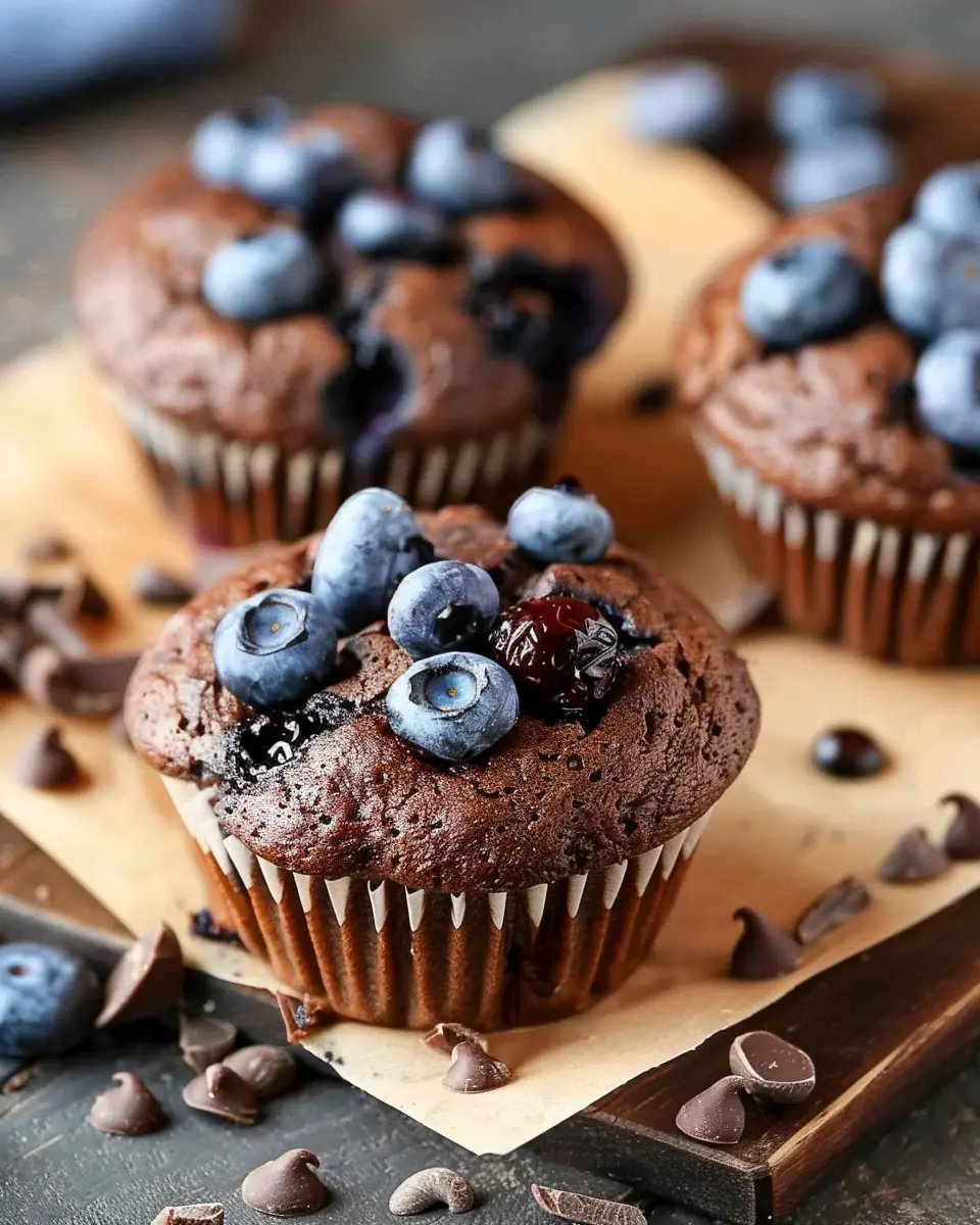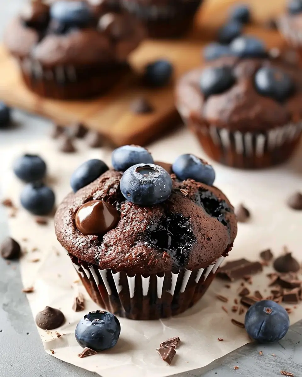 PrintDark Chocolate Blueberry Muffins: Indulgent and Homemade Delight