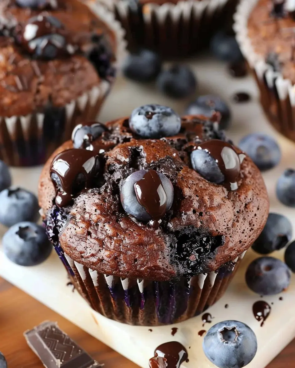 Deliciously moist and rich, these dark chocolate blueberry muffins are a perfect treat for any occasion.