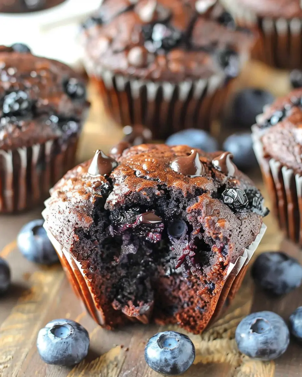 Another pitfall? Choosing the wrong chocolate. Opt for high-quality cocoa powder and chocolate chips for a richer flavor, and don’t forget to fold in the blueberries carefully to prevent them from bursting. And if you’re tempted to substitute fresh blueberries for frozen ones, be cautious; frozen berries often release more moisture, which could lead to soggy muffins. Always check baking times and adjust based on your oven, as some can run hotter than others.