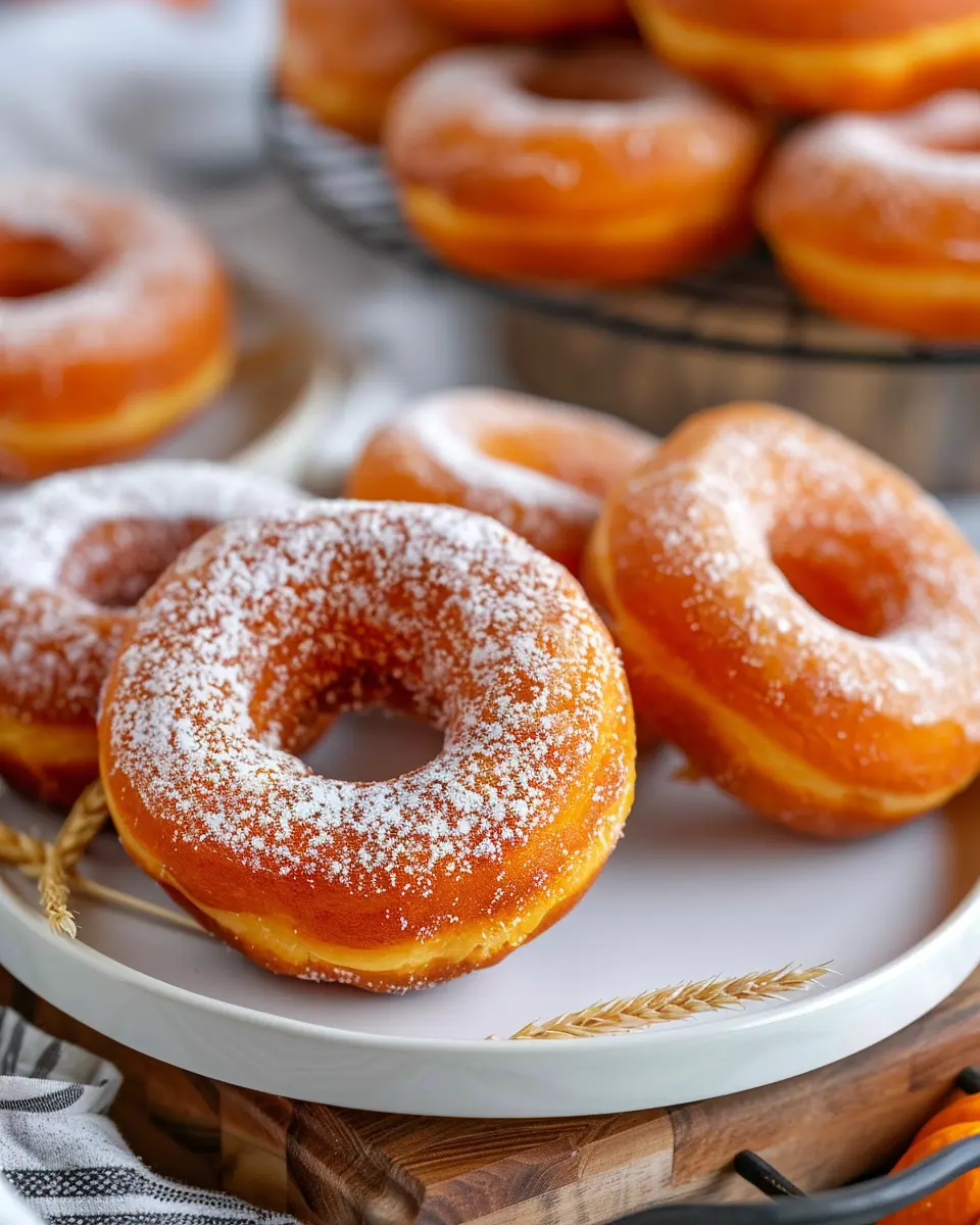 • These donuts can be glazed with a simple sugar glaze or topped with powdered sugar.
