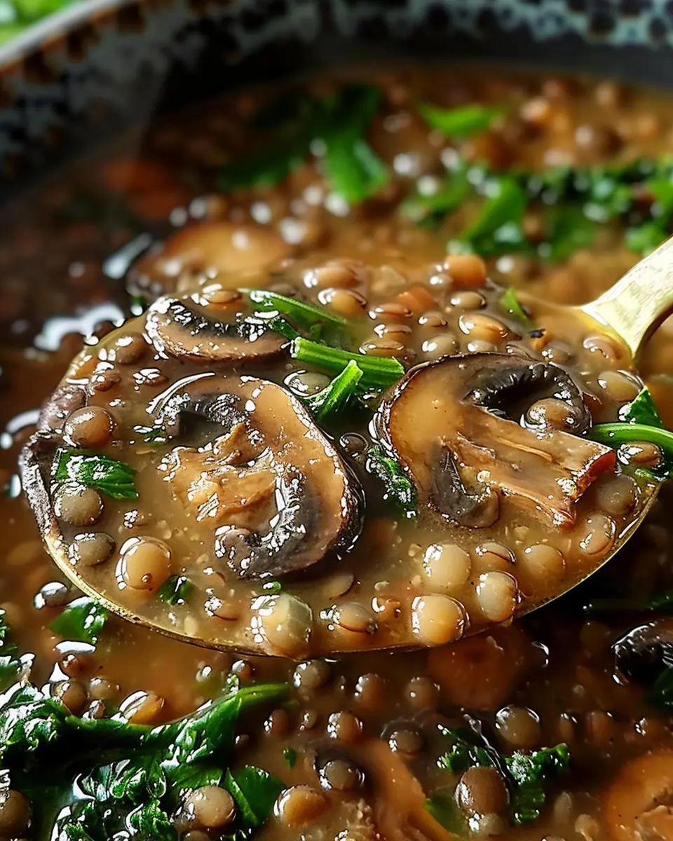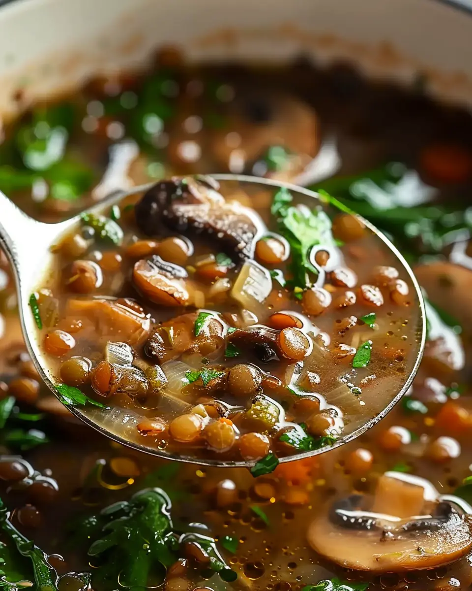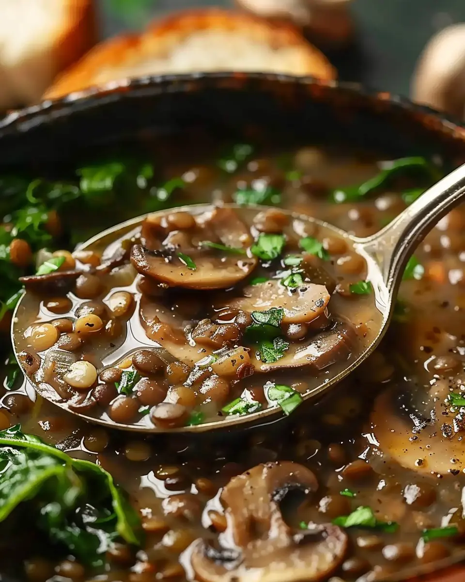 Enjoy a warm bowl of French Lentil and Mushroom Soup that perfectly combines flavors and comfort in every sip.