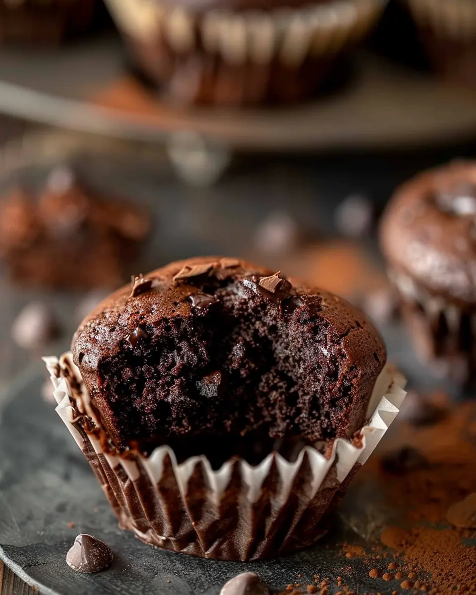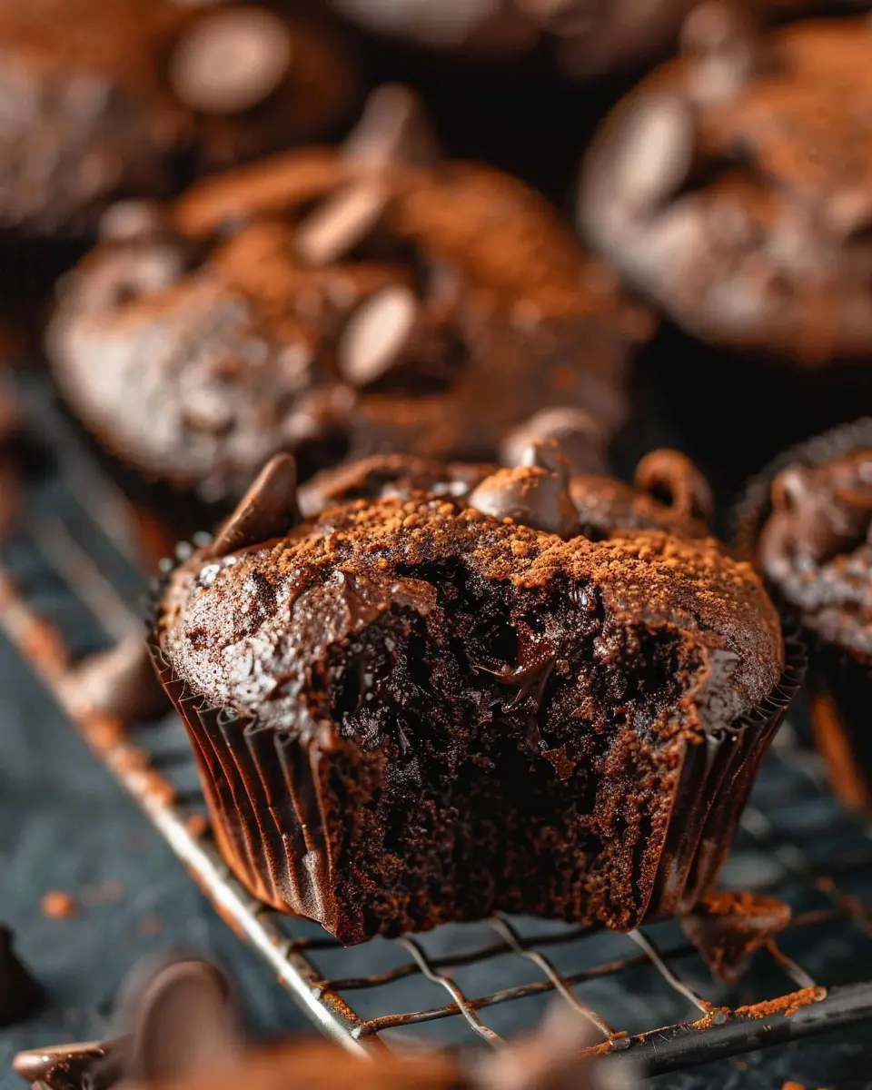 Indulge in these rich and fudgy double chocolate muffins that are perfect for any chocolate lover.