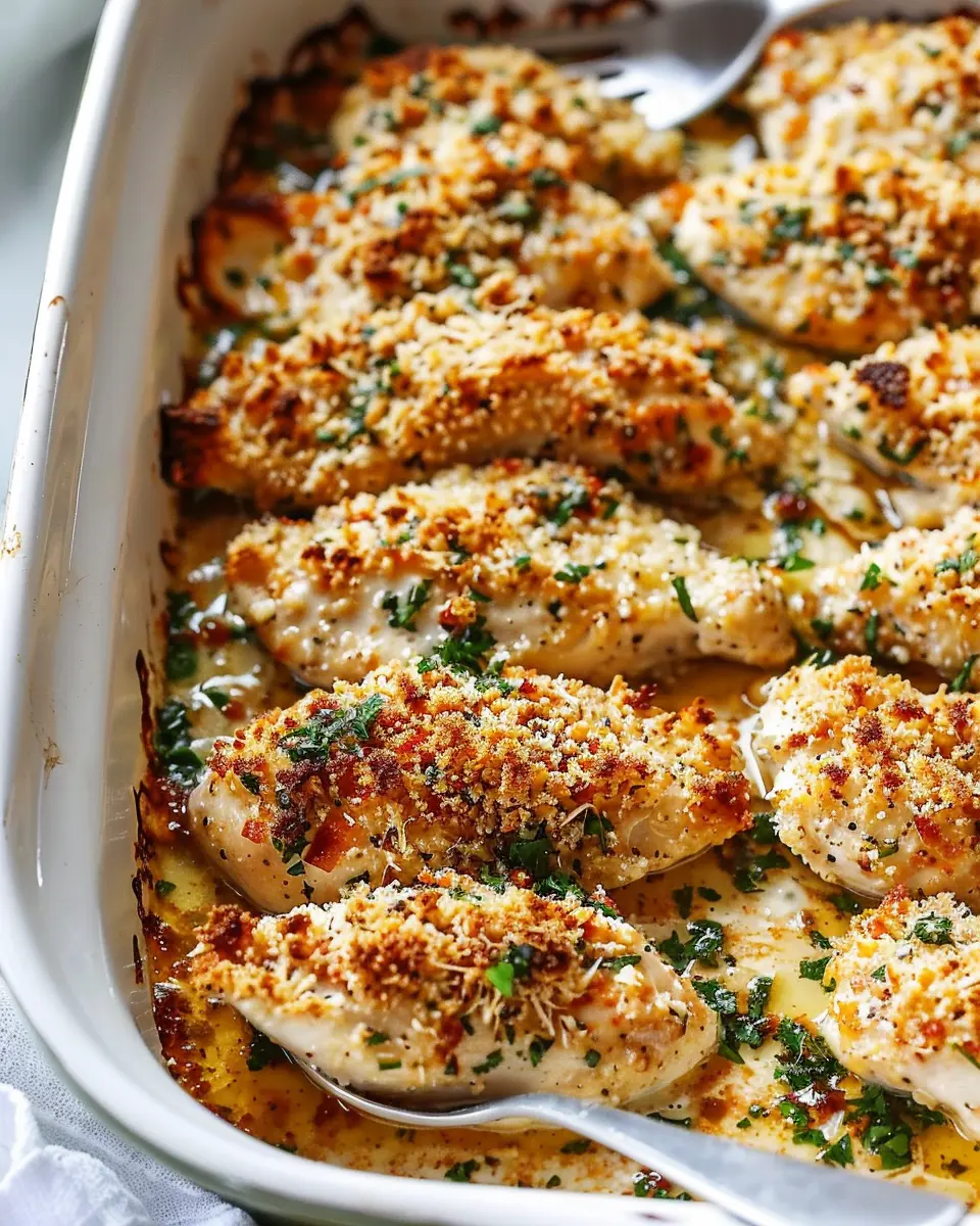 A delicious and easy recipe for Garlic Parmesan Chicken Bake that combines crispy chicken with a flavorful garlic parmesan sauce.