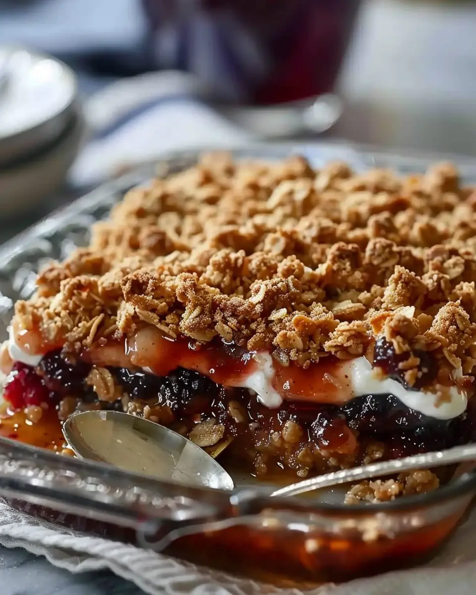 Once everything is well-mixed, transfer the fruit mixture into your greased baking dish. Spread it out evenly, then press down slightly to ensure that everything is snug, but don’t worry about it being perfect—this dish is all about rustic charm! The juicy filling is going to bubble up beautifully as it bakes.