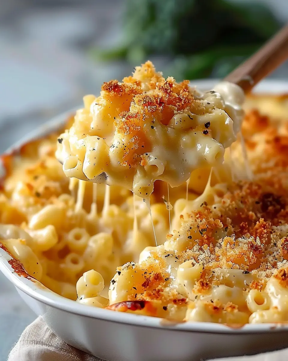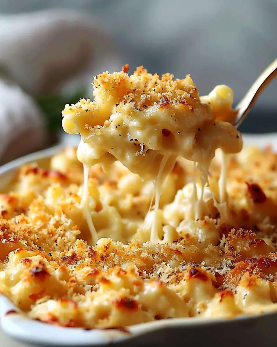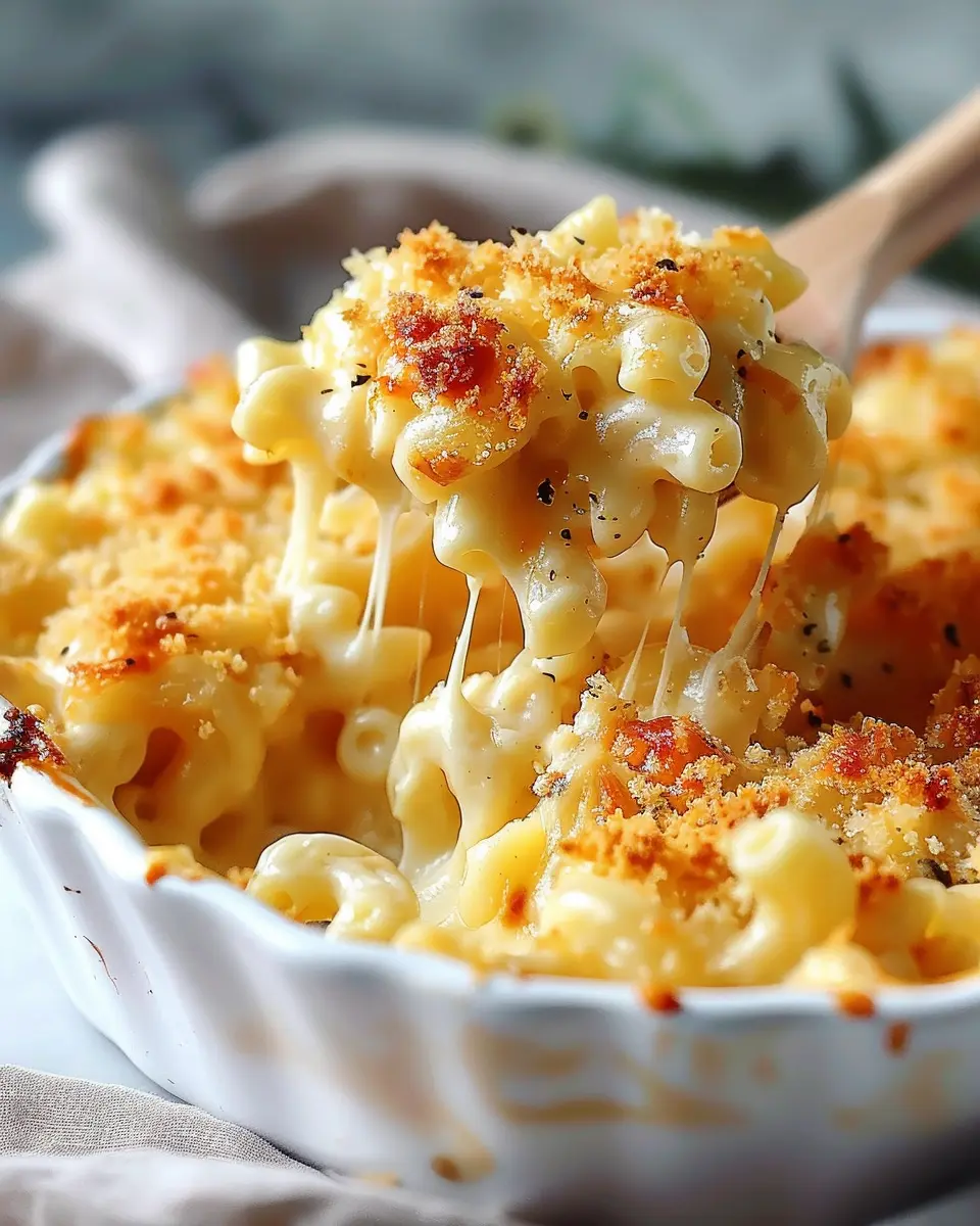 Golden Baked Homemade Mac and Cheese with Turkey Bacon Delight