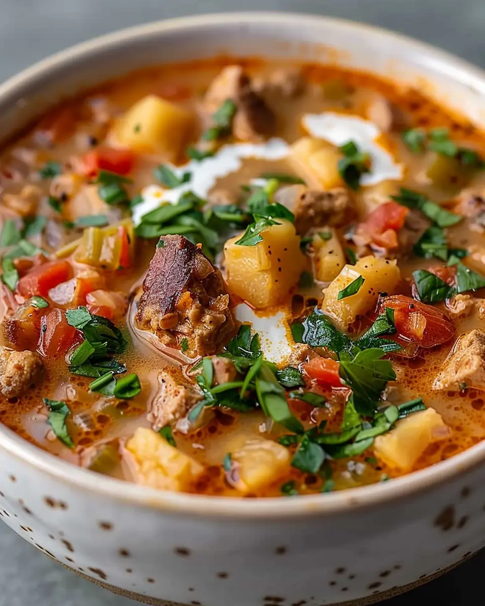 PrintHearty Keto Soup: Indulgent Comfort with Turkey Bacon and Chicken Ham