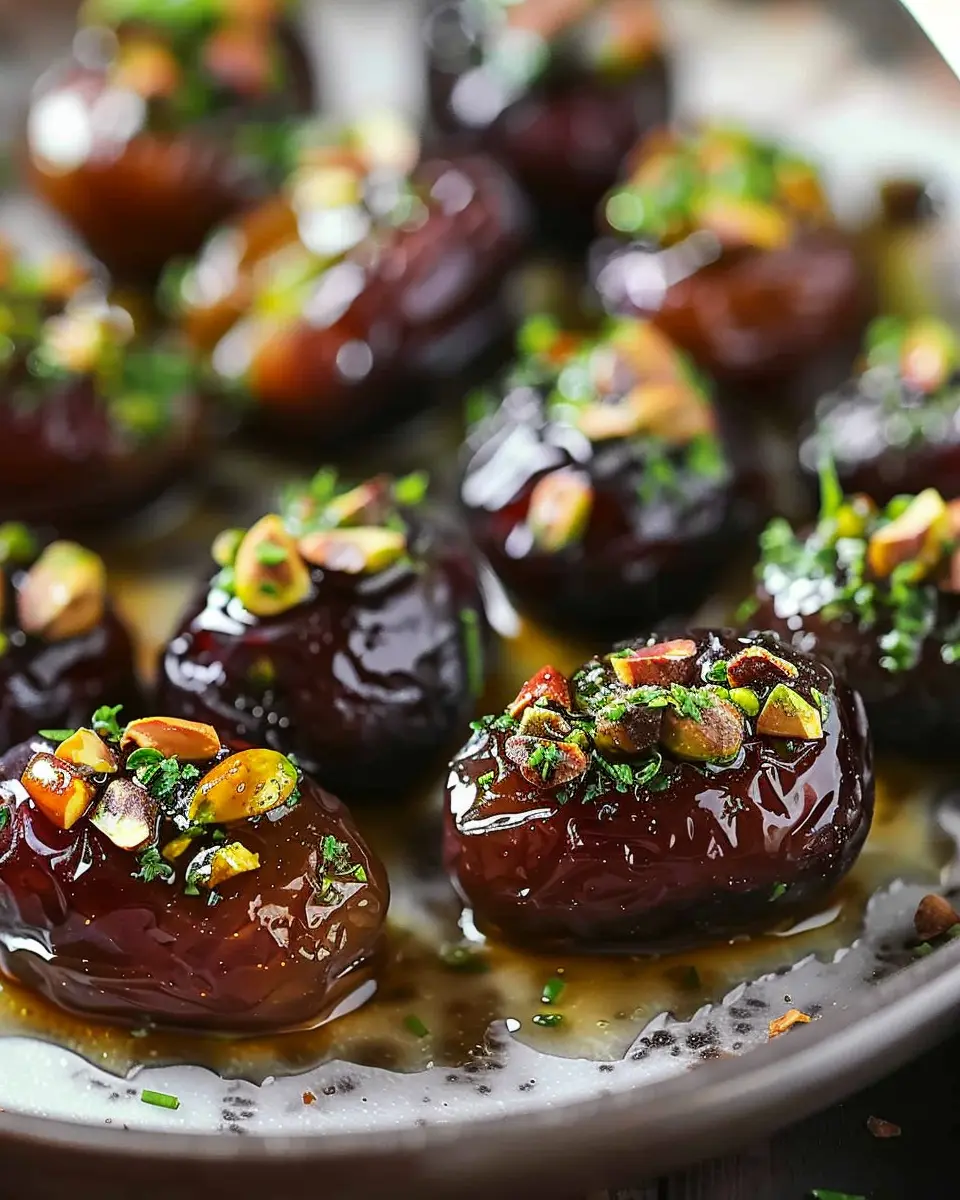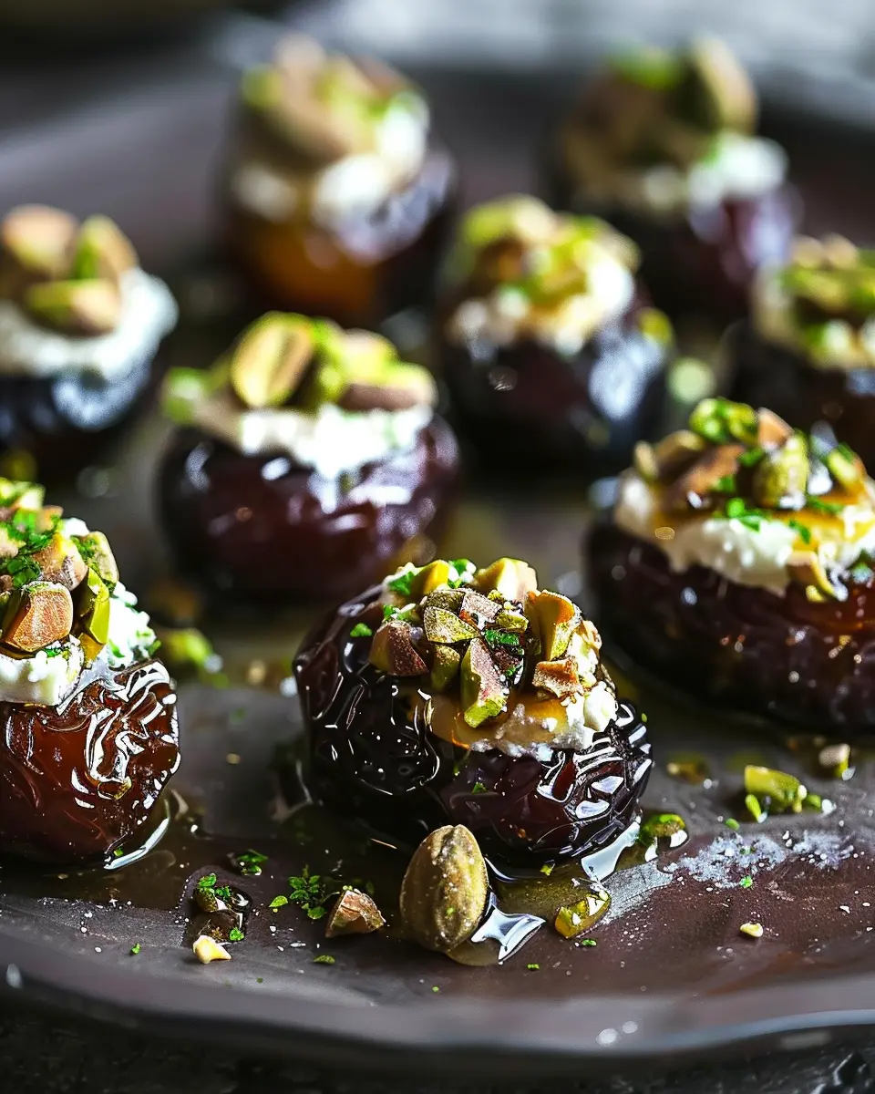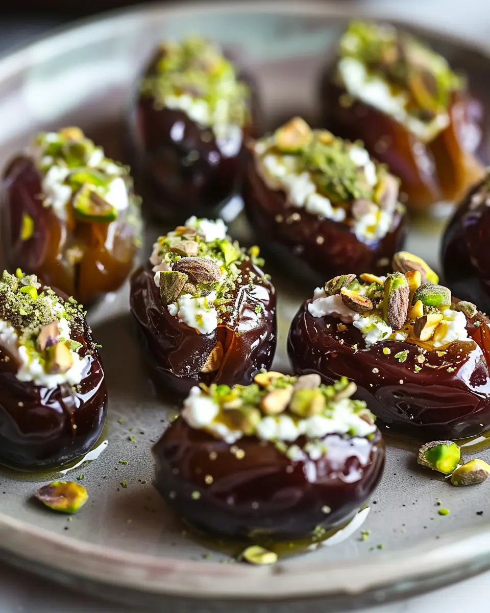 In summary, Honey Pistachio Ricotta Stuffed Dates offer a delightful combination of sweet, creamy, and crunchy elements that can elevate any gathering or indulgent snack time. The richness of the ricotta, mixed with the nutty pistachios and the luscious drizzle of honey, creates a symphony of flavors that’s not only pleasing to the palate but visually stunning as well. They are truly a treat that impresses without requiring extensive culinary skills.