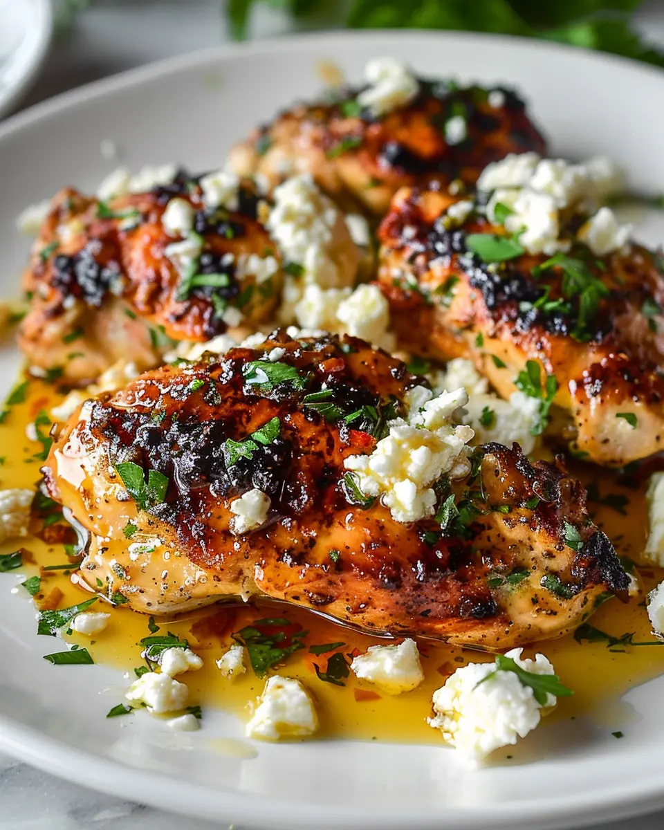This Hot Honey Feta Chicken recipe combines savory and sweet flavors for a delicious meal that is easy to prepare.