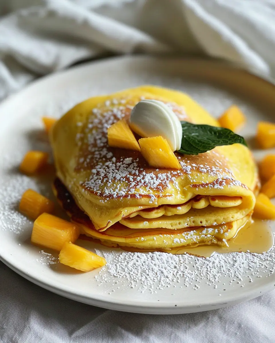 When it comes to serving your mango pancakes, presentation is key. Stack your pancakes high on a colorful plate, draping fresh mango slices on top and around the stack. A drizzle of warm maple syrup or a dollop of whipped cream can take your dish to the next level. For a burst of color, sprinkle some edible flowers or finely chopped mint on the side. The vibrant colors not only attract the eye but enhance the overall eating experience. You can also serve them with fresh berries or a side of yogurt to balance the sweetness.
