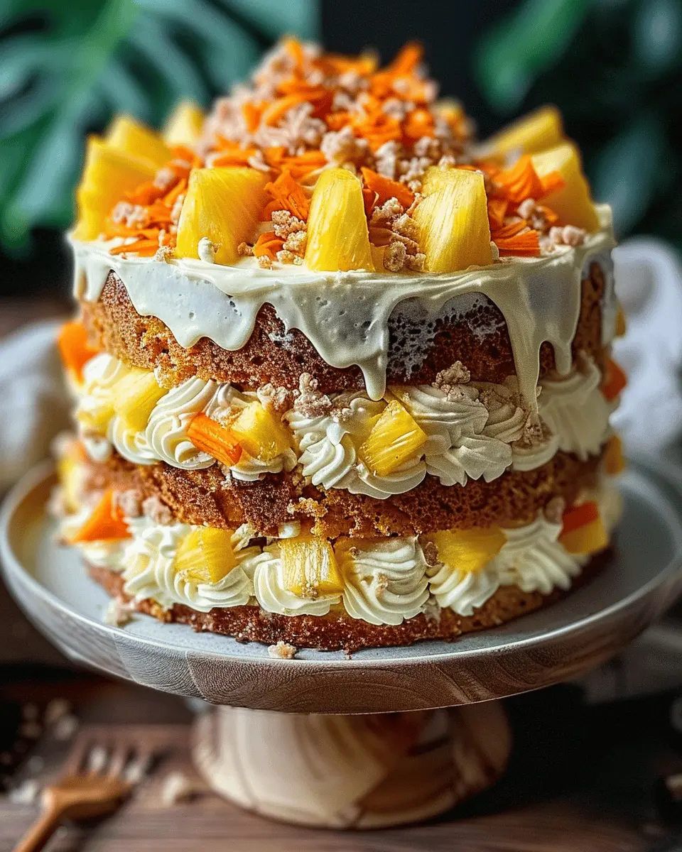 The Pineapple Carrot Cream Cake is not just another dessert; it’s an experience that blends the sweet, tropical flavors of pineapple with the earthy notes of carrots. This cake not only delights the taste buds but also offers a wonderful opportunity to impress friends and family at your next gathering. Imagine the joy in their faces as you serve a slice of this moist, flavorful creation, topped with a luscious cream cheese frosting.