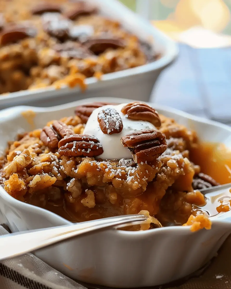 This Pumpkin Pecan Cobbler is the ultimate comfort dessert, combining the rich flavors of pumpkin and pecans in a warm, inviting dish.