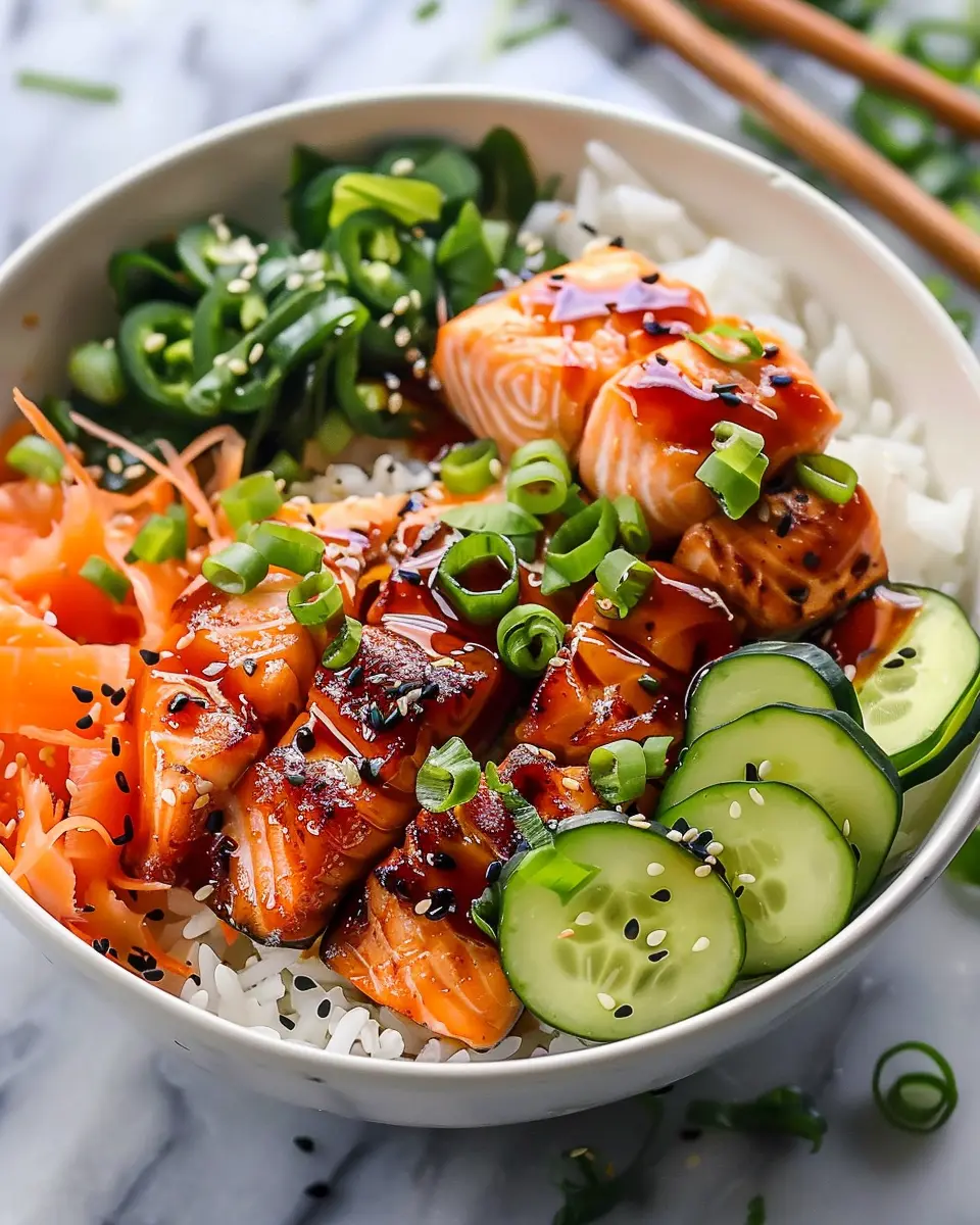 Customizable: One of the best things about a salmon rice bowl is that you can easily adapt it to your tastes. Want a spicy kick? Add some Sriracha or chili oil. Prefer something more mellow? A drizzle of soy or teriyaki sauce will do the trick. Plus, you can mix and match vegetables, rice varieties, and toppings—I love adding avocado, seaweed, or pickled ginger for that extra layer of flavor!