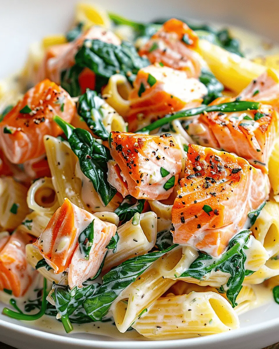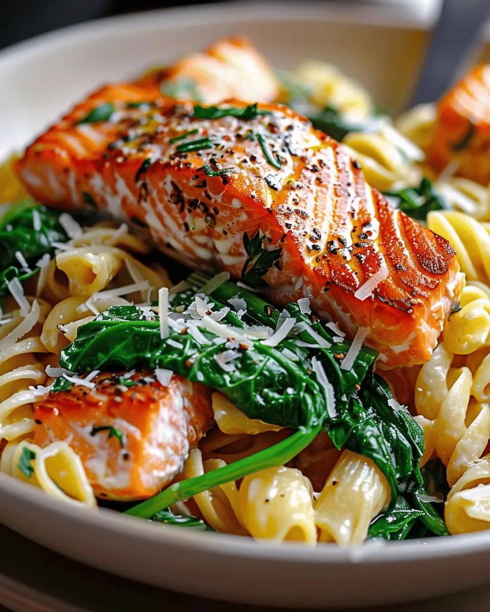 Let’s talk about the nutrient-packed ingredients. Salmon is rich in omega-3 fatty acids, which can do wonders for your heart and brain health. Spinach, on the other hand, is loaded with essential vitamins like A, C, and K, plus minerals like iron. Pair these with some whole-grain pasta, and you’ve got a dish that not only tantalizes the tastebuds but also nourishes your body.