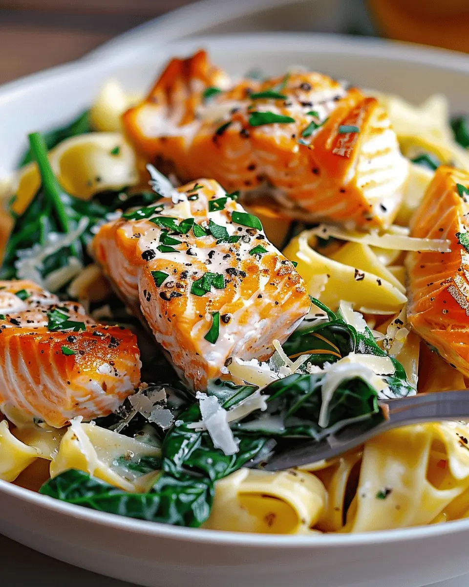 Cooking a salmon spinach pasta dish is not only a delightful culinary adventure but also a health-conscious choice packed with nutrients. This dish combines the rich flavors of salmon with the vibrant greens of spinach, all enveloped in a creamy sauce. Let’s dive into the preparation step-by-step.