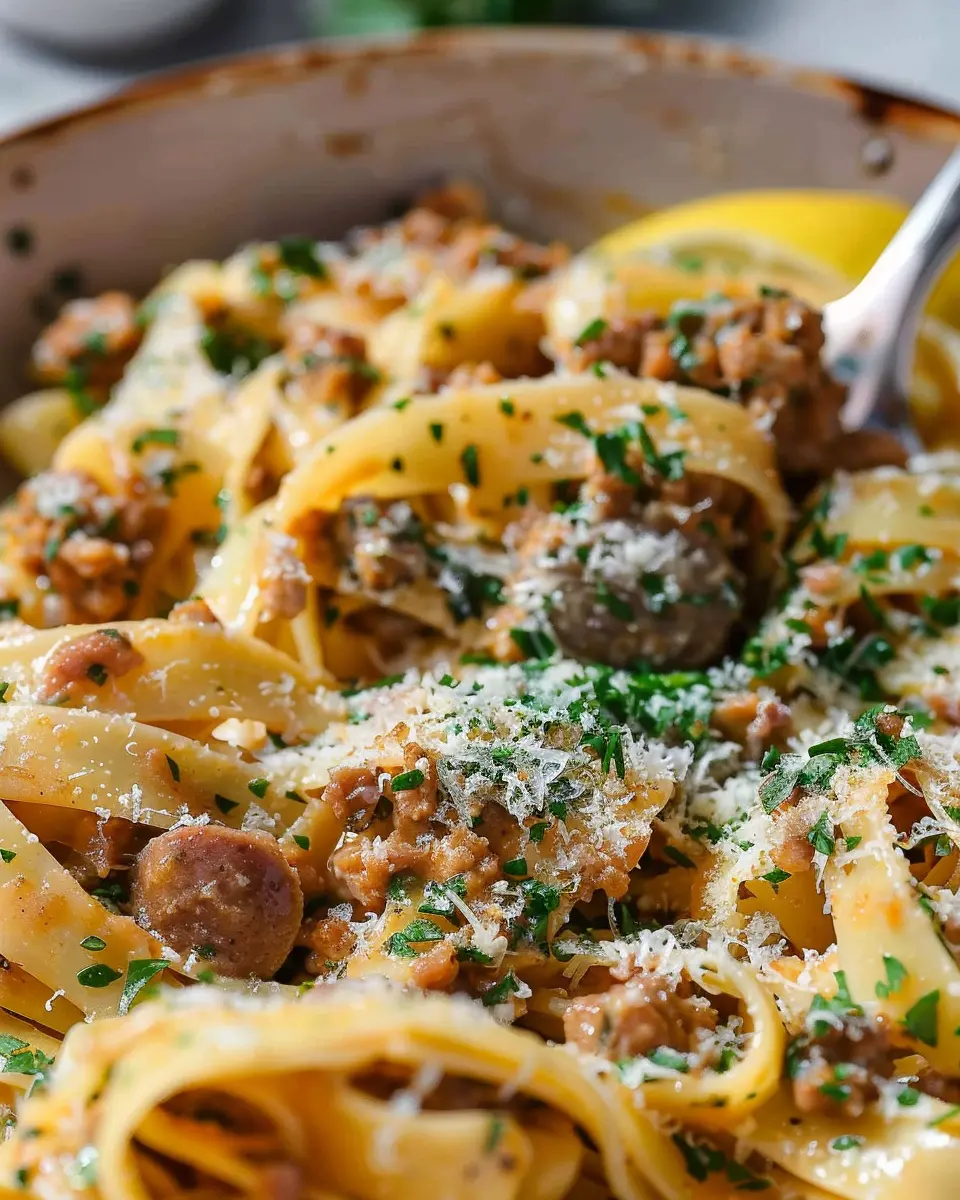Presentation matters, especially if you’re trying to impress! Serve your Saucy Sausage and Lemon Pasta in individual bowls for a casual yet sophisticated look. A sprinkle of fresh parsley or grated Parmesan adds a touch of elegance, making your meal Instagram-worthy. For a fun twist, consider adding the pasta to a roasted bell pepper or a hollowed-out squash for a colorful, edible bowl that highlights the dish’s vibrant flavors.
