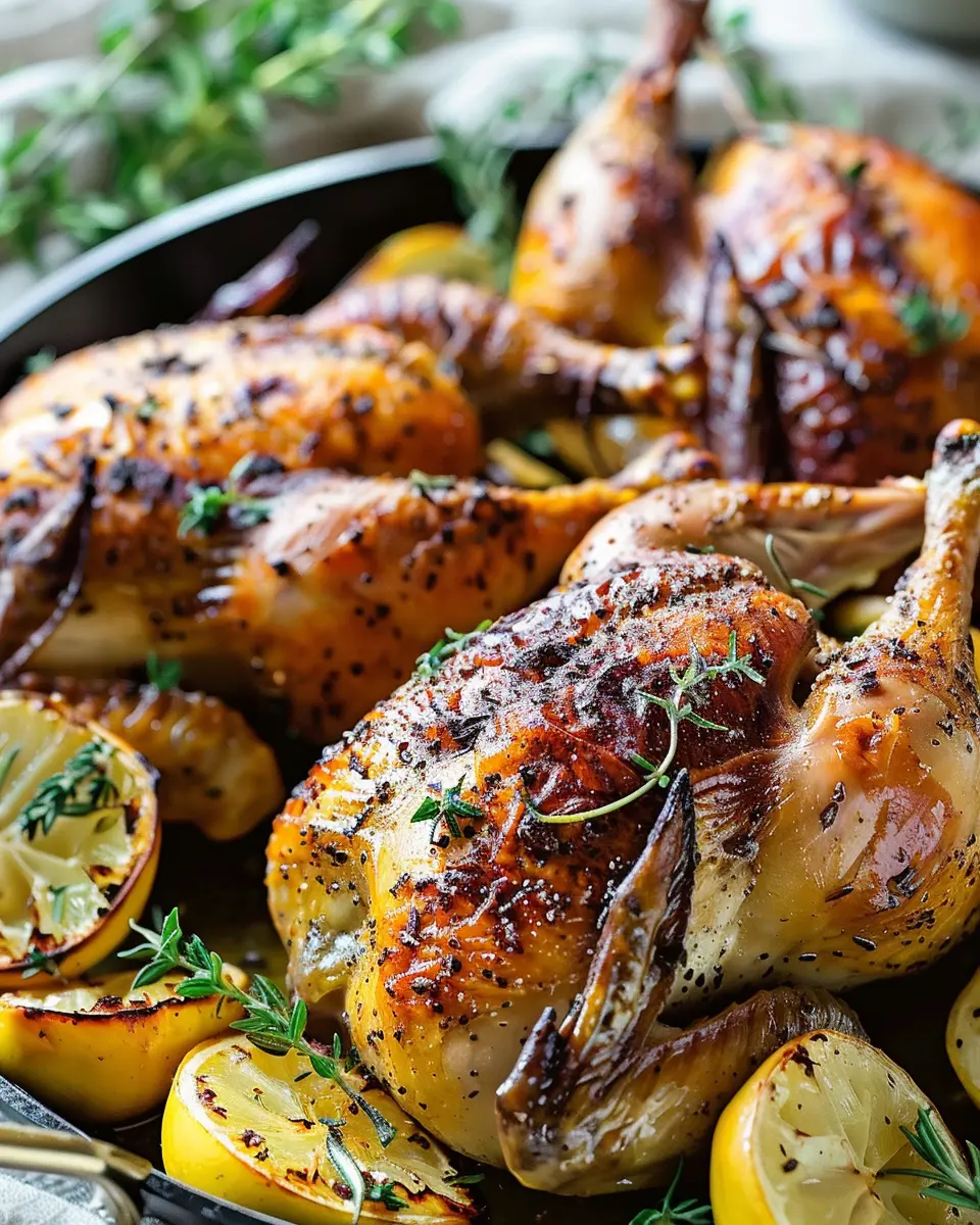 A delicious and aromatic dish featuring roasted Cornish hens infused with herbs and garlic.