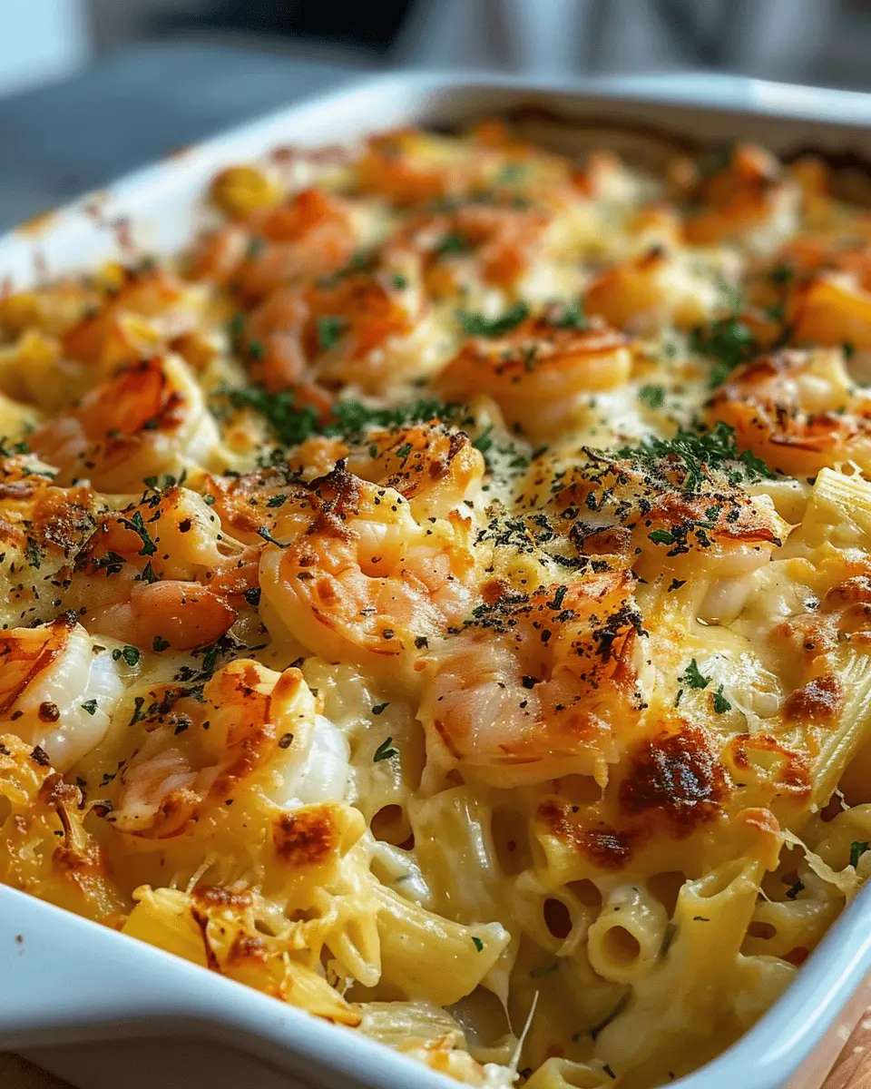 Enjoy this savory shrimp scampi pasta bake, perfect for cozy dinner nights with family and friends. This dish combines succulent shrimp and pasta, all baked to perfection.