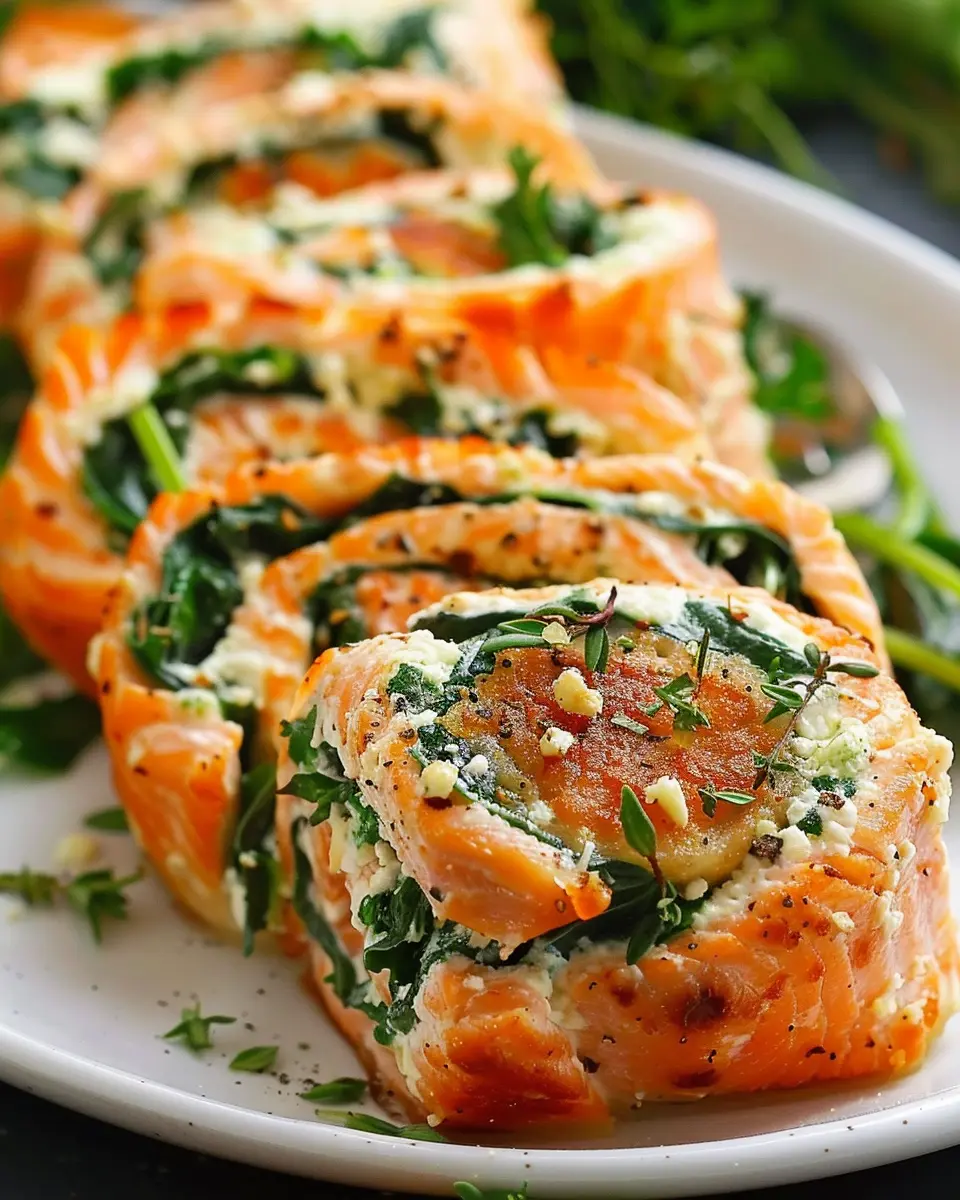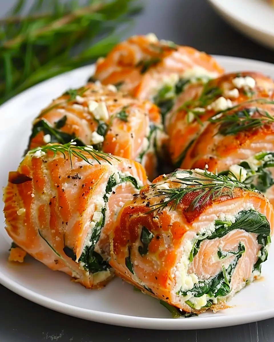 PrintSpinach & Feta Stuffed Salmon Pinwheels: A Healthy Delight
