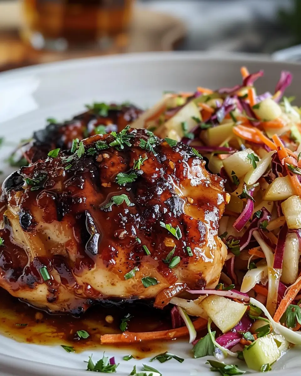 Sticky Apple Cider Chicken with Crisp Autumn Slaw