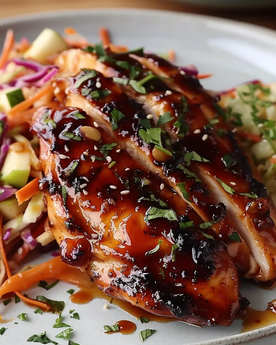 Finally, it’s time to plate your creation! Serve your Sticky Apple Cider Chicken alongside the autumn slaw, letting the vibrant colors of the slaw contrast beautifully with the rich glaze of the chicken. Drizzle any remaining glaze from the skillet over the chicken for an extra burst of flavor.