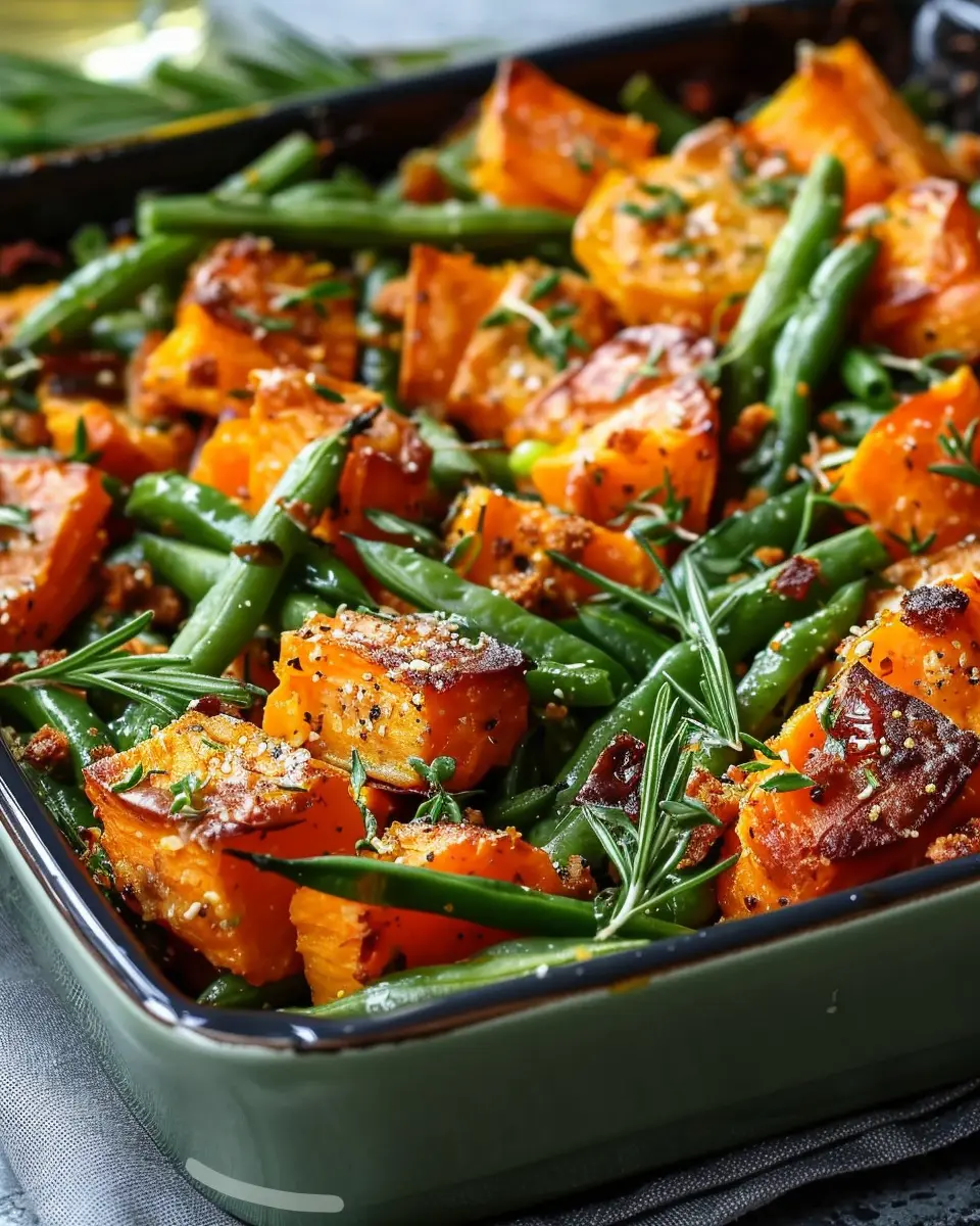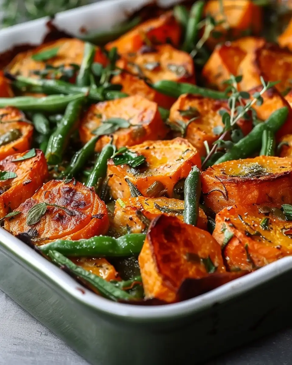 Another fun way to switch things up in your sweet potato green bean tray bake is by playing around with herbs. Why not try fresh rosemary for a woodsy flavor or a sprinkle of thyme for a hint of earthiness?