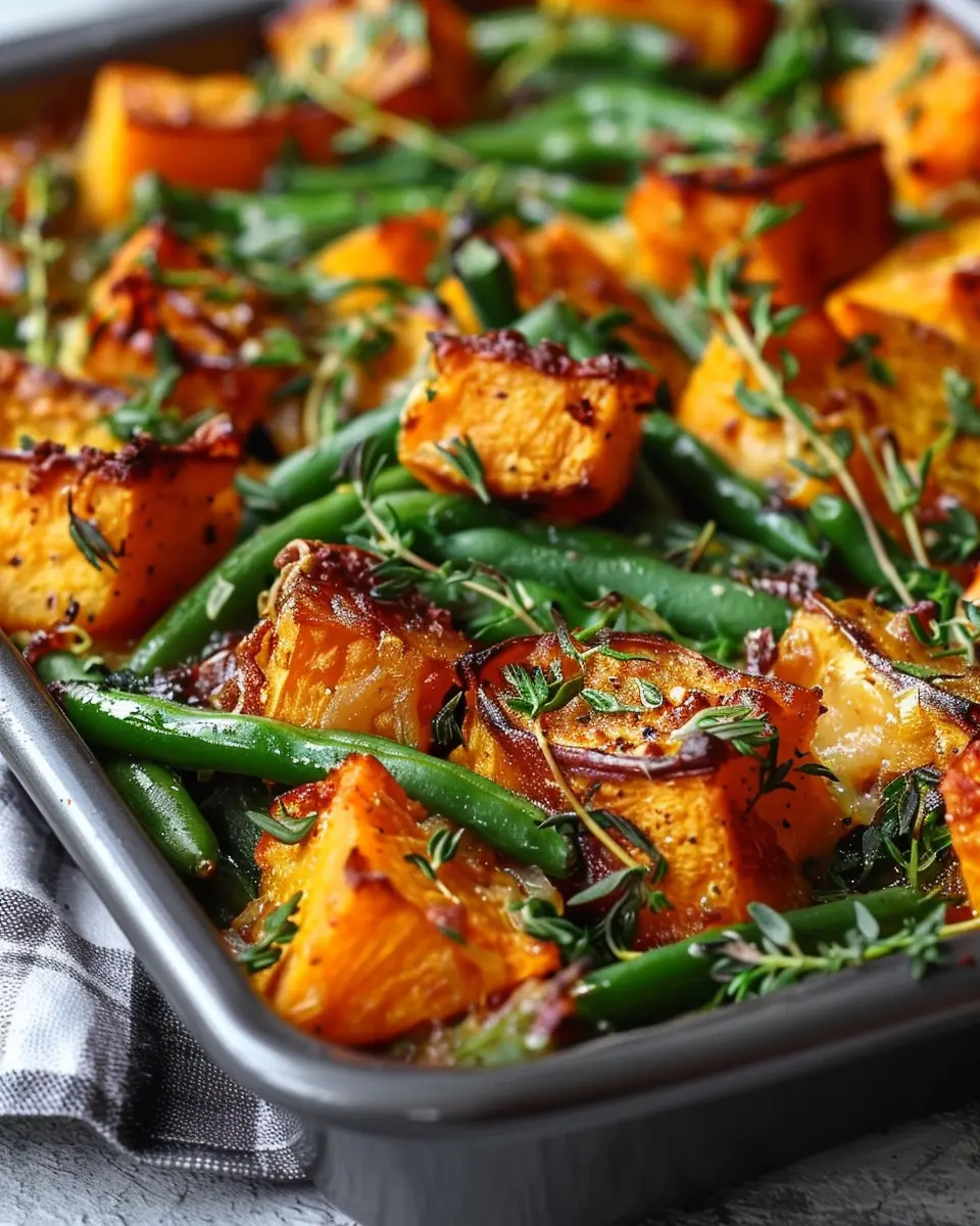 PrintSweet Potato Green Bean Tray Bake: Easy, Healthy Comfort Food Recipe